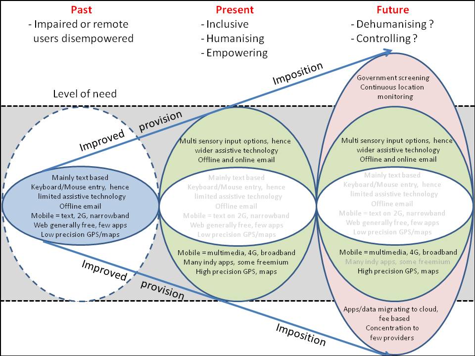 I am reflecting here on the state of the digital environment for elearning – to what extent we could regard our current provision as the best we are likely to have, given warning signs for the future.  Issues of access for impaired students to web based learning and the freedom of learners to express their views on a free web form the core of the consideration.